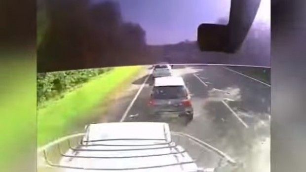Videoja është regjistruar nga kamera e vendosur në pjesën e përparme të automjetit. Shoferi është përplasur me disa makina të tjera, duke u shkaktuar dëme serioze.