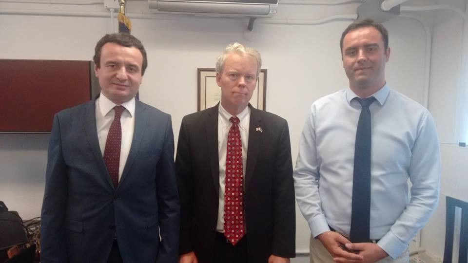 I nominuari i Lëvizjes Vetëvendosje për kryeministër të Kosovës, Albin Kurti, dhe deputeti i Lëvizjes Vetëvendosje, Glauk Konjufca, janë takuar sot në Ambasadën Amerikane në Prishtinë me ambasadorin Greg Delawie.