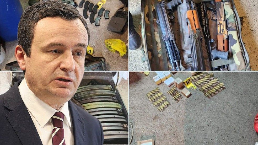”Një tjetër fitore për shtetin ligjor dhe organet e sigurisë. Sot Policia e Kosovës në prani të trupave të KFOR-it bastisi një depo armësh në Zveçan që ishte përdorur për të kontrabanduar armë në Kosovë dhe për t’ua shpërndarë ato bandave të dhunshme. U konfiskuan armë ushtarake si pushkë automatike, granata dore dhe eksplozivë“, ka shkruar Kurti të martën.