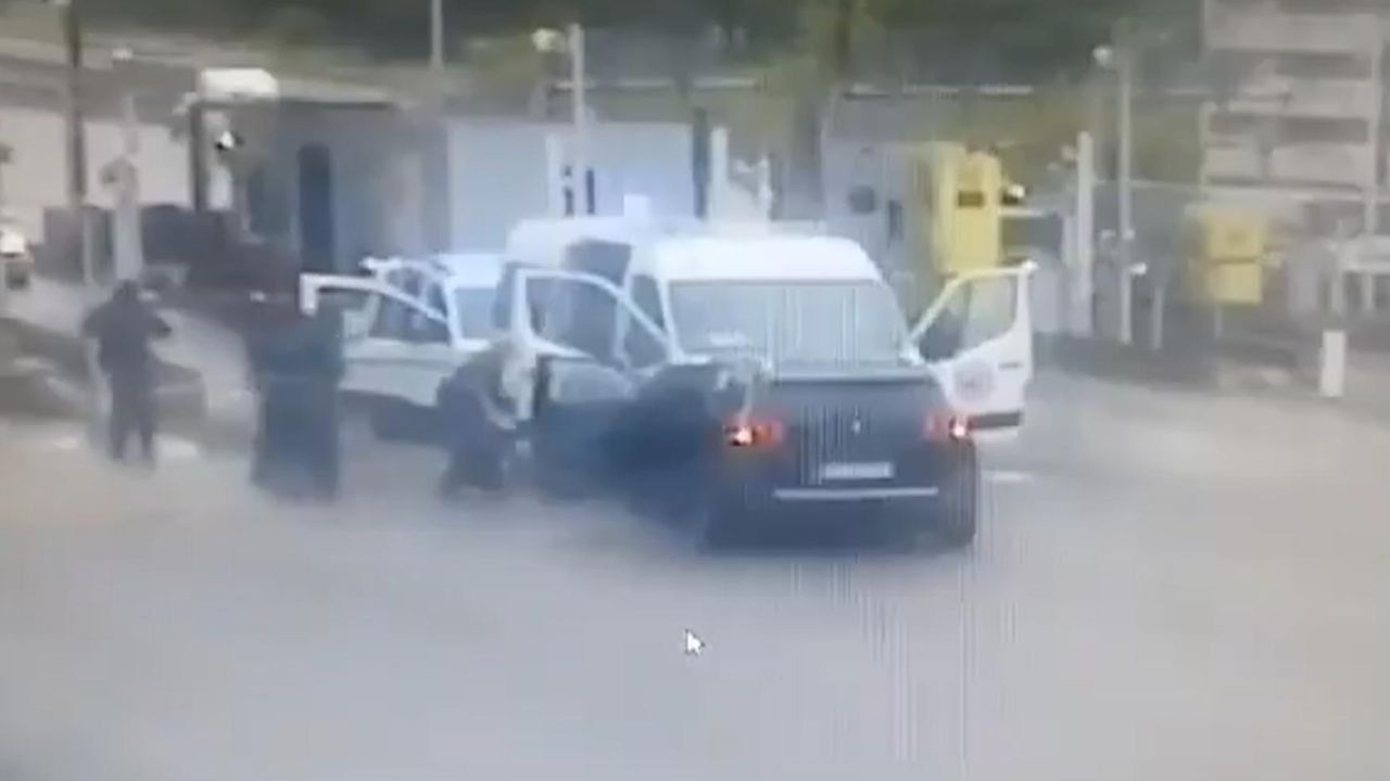 Pamjet e kamerave të vëzhgimit treguan një makinë të zezë duke u përplasur me një furgon të bardhë.