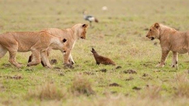 Pavarësisht se shumë më i vogël se luanët, Mangusi nuk u arratis por, përpiqej t’i “hante ata”.