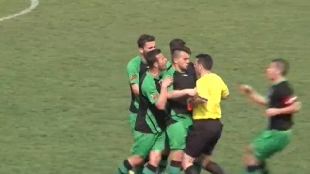 Futbollistët vendas nuk kanë qenë të kënaqur me këtë dhe vendimet e tjera të gjyqtarit kryesor, i cili pas sulmit largohet dhe futet nën mbrojtjen e kordonit të Njësisë Speciale të Policisë, së bashku edhe me gjyqtarët e tjerë të ndeshjes, raporton KTV.