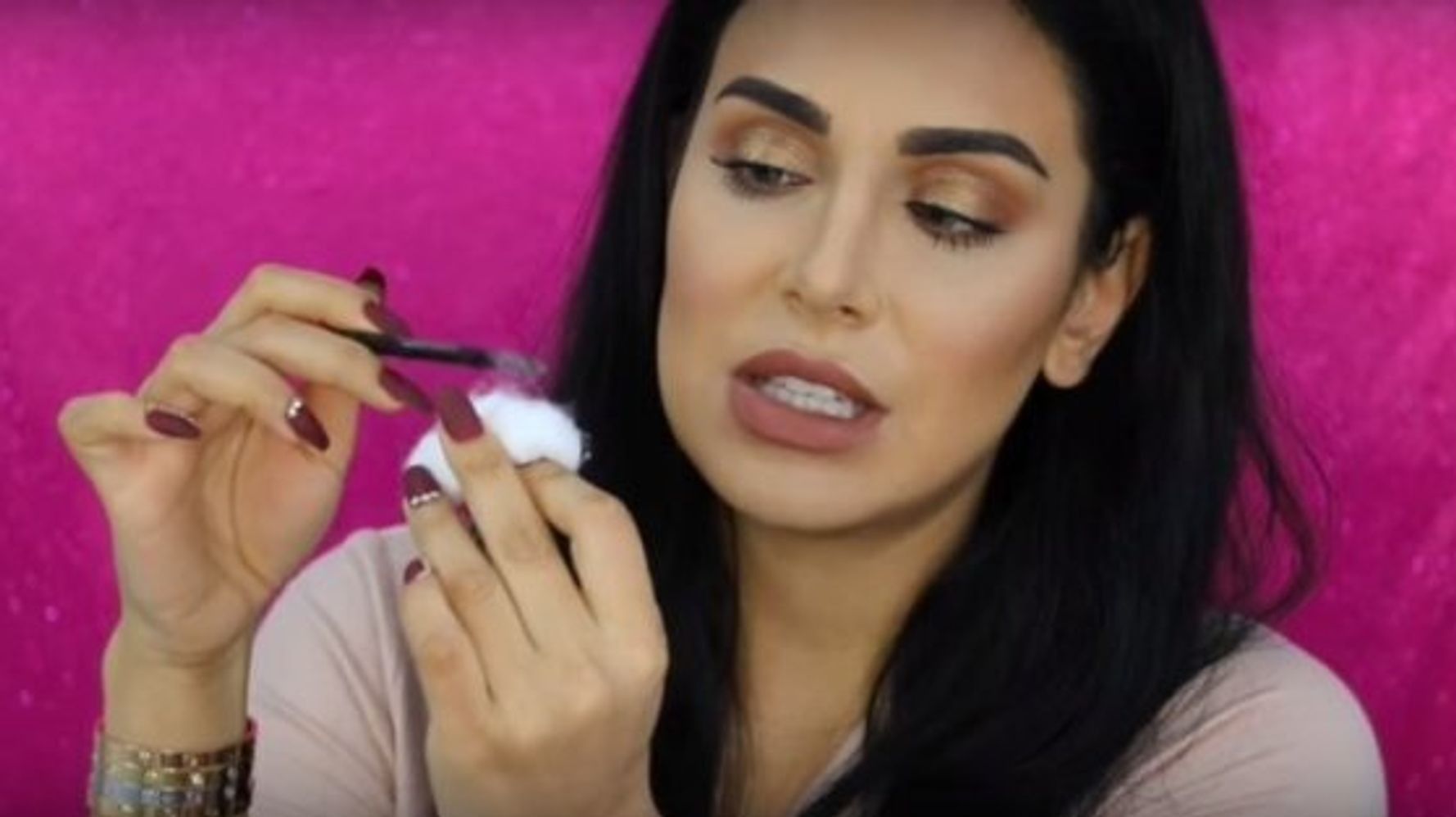 Pas kësaj sërish vë maskara, dhe sërish e kalon një copëz pambuku mbi qerpikë, në mënyrë që copëzat të ngjiten për qerpikë dhe t’i zgjasin ata, transmeton Telegrafi.