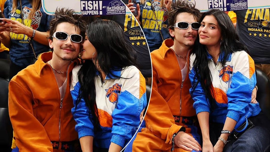 Kylie mahniti me një xhaketë Knicks dhe xhinse të errëta, ndërsa Timothee, zgjodhi një tuta në ngjyrat e ekipit, shkruan DailyMail.