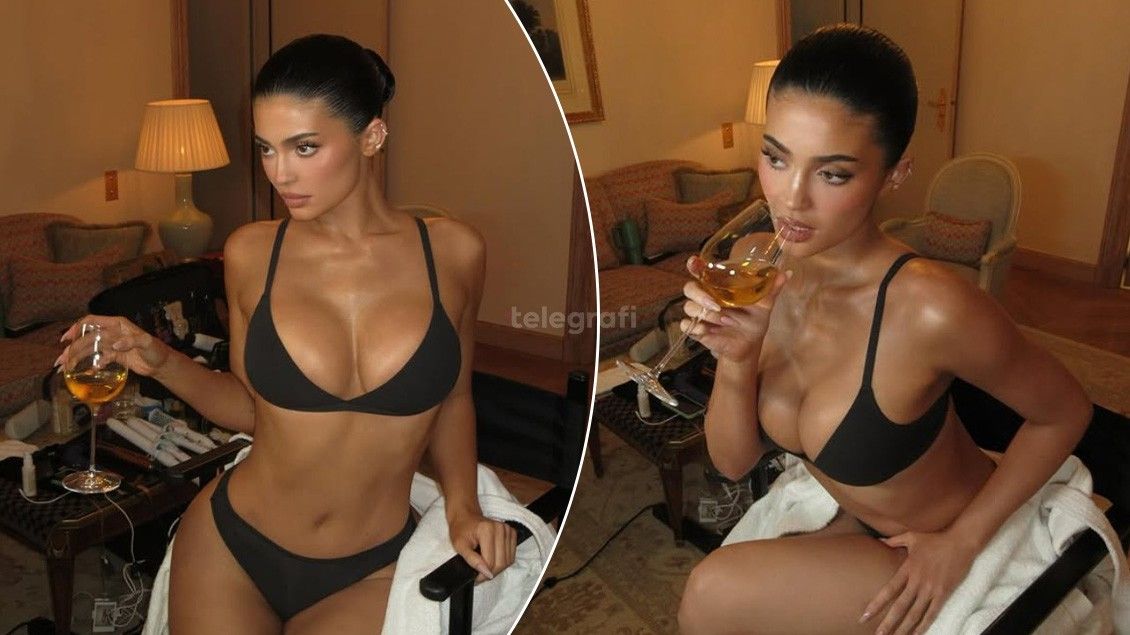 Në pamjet e publikuara, ajo shfaqet fillimisht në dhomën e hotelit në të brendshme të zeza minimaliste, duke shijuar një gotë verë, ndërsa në disa fotografi të tjera shihet e veshur me një fustan elegant të zi me rripa shumë të hollë që nxjerr në pah linjat e saj trupore.