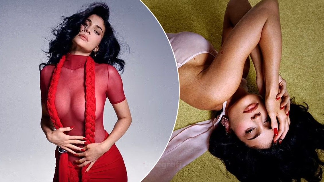 Kylie Jenner ka mahnitur fansat me një set të ri fotografik për revistën Dazed, ku shfaqet me veshje të guximshme, përfshirë një fustan të kuq transparent dhe të brendshme elegante që theksojnë siluetën e saj.