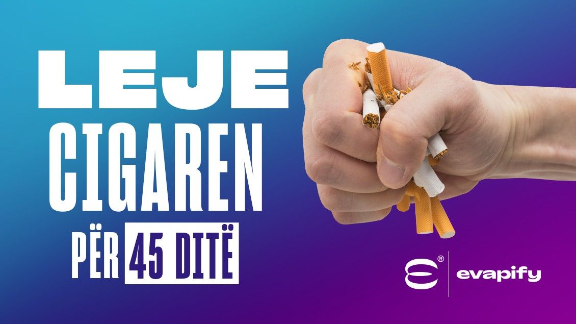 Evapify, si kompani lider në industrinë e vaping, ka nisur një inicativë inovative të quajtur " Leje cigaren për 45 ditë ". Ky program ka për qëllim të identifikojë 30 persona dhe t'i ndihmojë ata në udhëtimin e tyre për të lënë cigaret tradicionale duke përdorur vaping si një alternativë potencialisht më pak e dëmshme. Sfida zgjat për një periudhë prej 45 ditësh, gjatë së cilës pjesëmarrësit do të reduktojnë gradualisht marrjen e nikotinës nga 5% në 2% dhe deri në 0% si qëllimin përfundimtar.