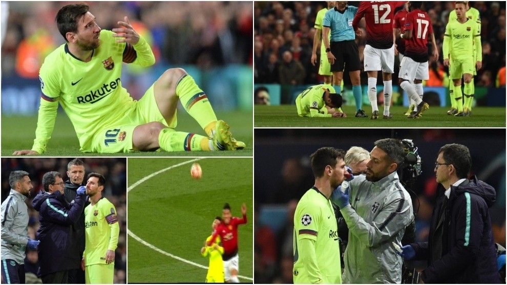 Barcelona mori një fitore 1-0 në Old Trafford, por Lionel Messi u godit në fytyrë nga Chris Smalling në pjesën e parë, ku kishte edhe gjakderdhje.