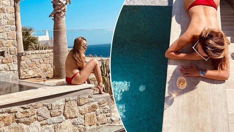 Dhe në njërën prej imazheve, prezantuesja e “Prive”-së pa hezitim tregoi pak edhe nga të pasmet e saj, ndërsa shijonte rrezet e diellit pranë pishinës.