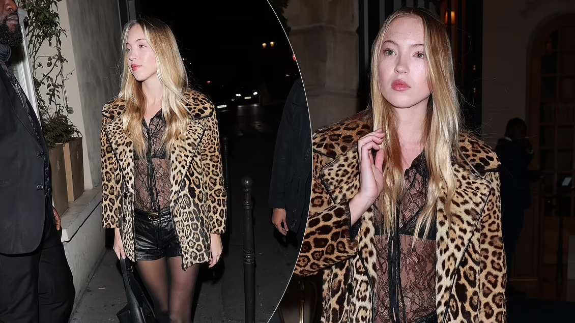 22-vjeçarja, vajza e supermodeles Kate Moss, u shfaq me një pamje të guximshme, e veshur me pantallona të ngushta lëkure, një triko të zezë transparente dhe një xhaketë me dizajn leopardi.