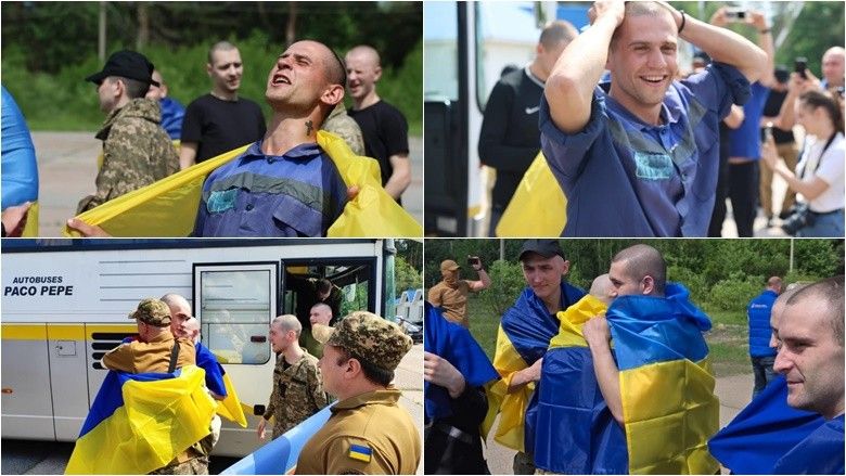 Lirohen ukrainasit që u shkëmbyen me të burgosur rusë – fytyrat tregojnë gëzimin e tyre