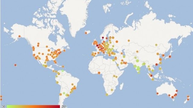 Harta paraqet qytetet ku shpenzimet e jetës janë më të mëdha: me të kuqen janë ato më të shtrenjtat, ndërsa me të gjelbrën më të lirat. Hartën interaktive mund ta shikoni këtu.