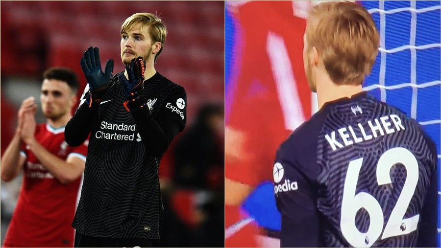 Emri i Caoimhin Kelleher ishte shkruar gabimisht në fanellën e tij në debutimin me Liverpoolin në Ligën Premier.