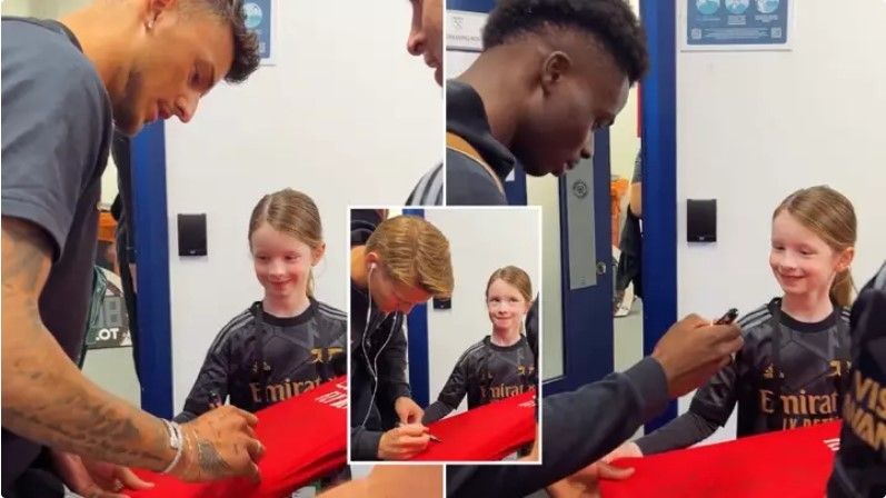 Në klip, skuadra e Topçinjve mund të shihet duke nënshkruar fanellën e një tifoze të re pas mbërritjes për ndeshjen e tyre në Ligën Premier kundër West Ham.