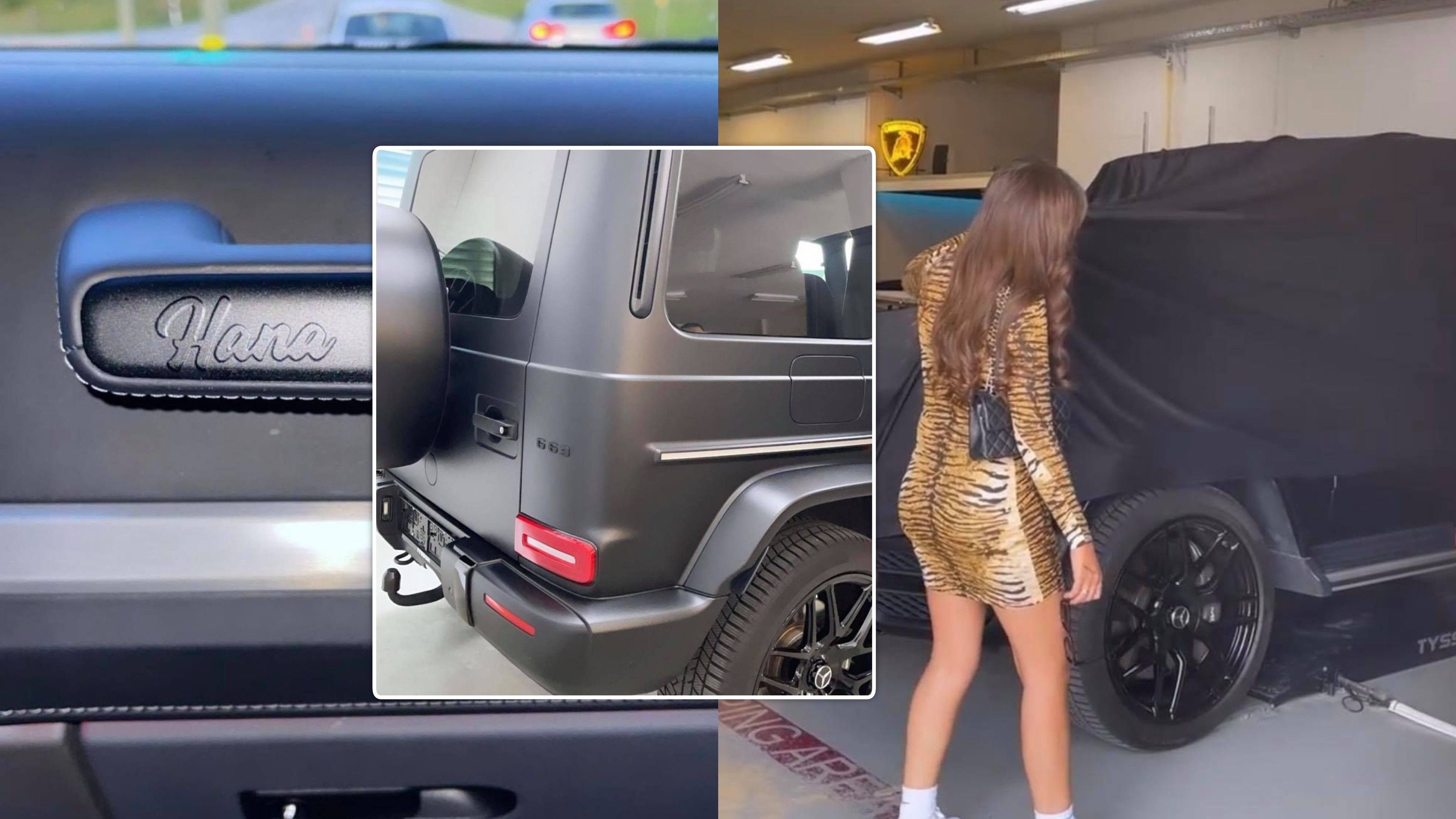 Në një tjetër imazh të ndarë brenda veturës shfaqet emri i vajzës së artistes ‘Hana’ dhe data e muaji i lindjes.