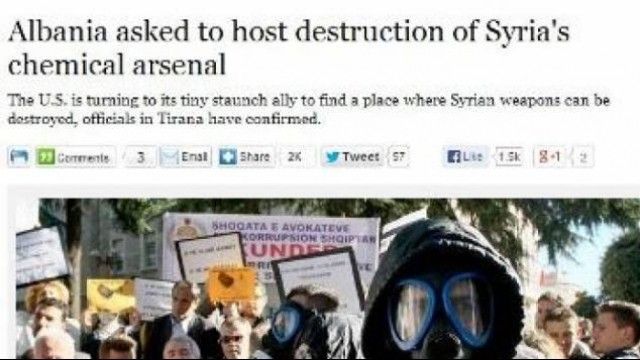 “Një vend i varfër, në skaj të Evropës, Shqipëria mori të burgosurit ujgurë, nga Guantanamo, kur Shtetet e Bashkuara të Amerikës nuk mund t’i riatdhesonin ata në Kinë. Ajo u ofroi azil 210 anëtarëve muxhahedinë Khalq, grup disident iranian i mbyllur gjatë në një kamp në Irak. Tani Shtetet e Bashkuara janë kthyer sërish në Shqipëri, duke shpresuar se ajo do të lejojë që armët kimike siriane do të shkatërrohen në tokën e saj. Kërkesa e administratës së Obamës për Shqipërinë, konfirmuar nga zyrtarët e qeverisë në Tiranë javën e kaluar, synon të zgjidhë një nga çështjet më të mprehta të planit të sponsorizuar nga SHBA për të çarmatosur arsenalin vdekjeprurës të Sirisë, VX dhe gazin mustardë. Një tjetër vend që zyrtarët amerikanë kërkuan për të trajtuar këtë punë, Norvegjia, ka refuzuar”, shkruan Los Angelos Times.