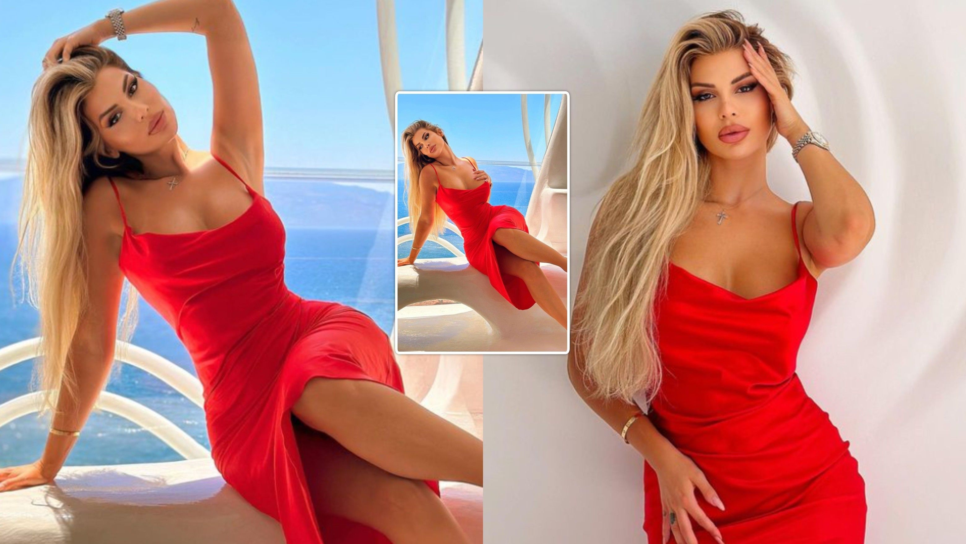 Dhe në disa imazhe të tjera, ajo dukej tejet provokuese në një fustan të kuq të kombinuar me aksesor ari.