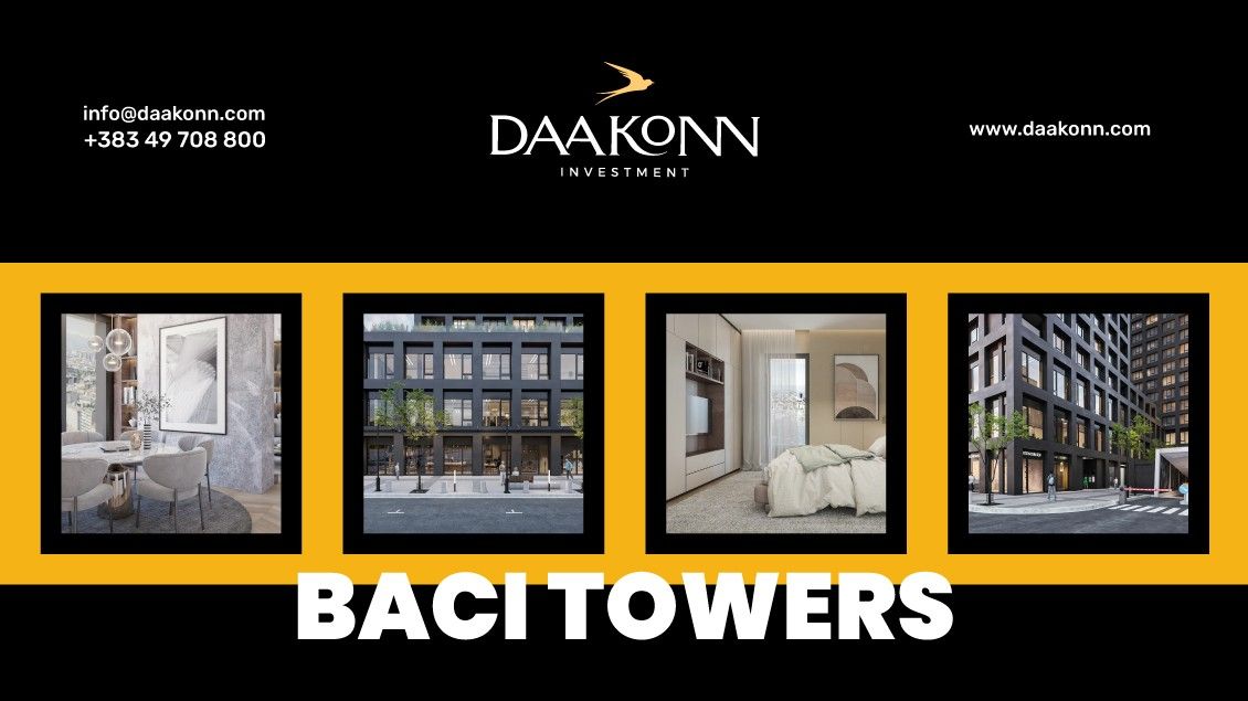 Është koha që të filloni një stil jetese më të sofistikuar dhe rehati të pakrahasueshme me Baci Towers, një projekt vizionar i sjellë në jetë nga DAAKONN Invesment. I vendosur në zemër të Ferizajt në Kosovë, këto kulla binjake qëndrojnë si një dëshmi e shkëlqimit arkitekturor dhe simbol i së ardhmes në zhvillimin urban.