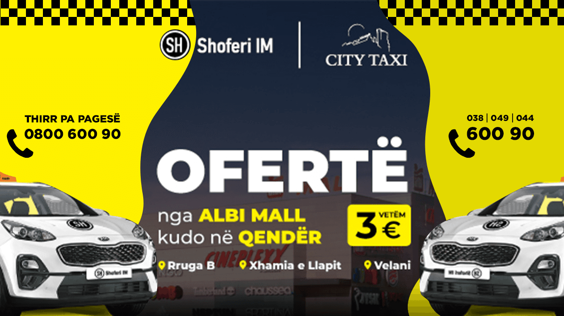 Me një ofertë shumë atraktive, Shoferi Im dhe City Taxi kanë vendosur që për vetëm 3 euro t’ju vozisë nga Albi Mall deri tek të gjitha lagjet brenda qytetit të Prishtinës si: Lakrishtë, Dardani, Ulpianë, Arbëri, Emshir etj dhe anasjelltas.