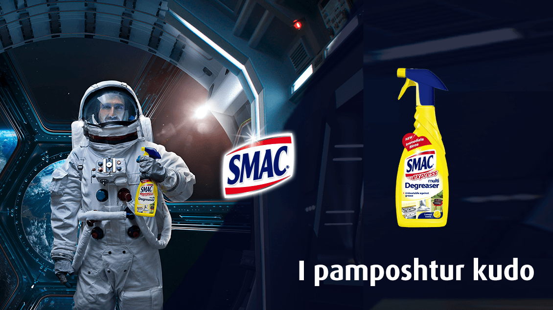 Duke filluar nga kuzhina, SMAC eliminon edhe yndyrat më të vështira dhe u rikthen sipërfaqeve pamjen e re. Për të vazhduar tutje tek dyshemet, dritaret dhe tavanet, këto produkte ofrojnë shkëlqimin e dëshiruar pa lënë pas asnjë mbetje, e deri te banjot, ato trajtojnë mbetjet e papastërtive dhe ndotjeve, njollat e forta të mbetura nga uji dhe problemet e mykut. Formula e butë, por e fuqishme e këtyre produkteve, ju siguron një hapësirë të pastër dhe të freskët.