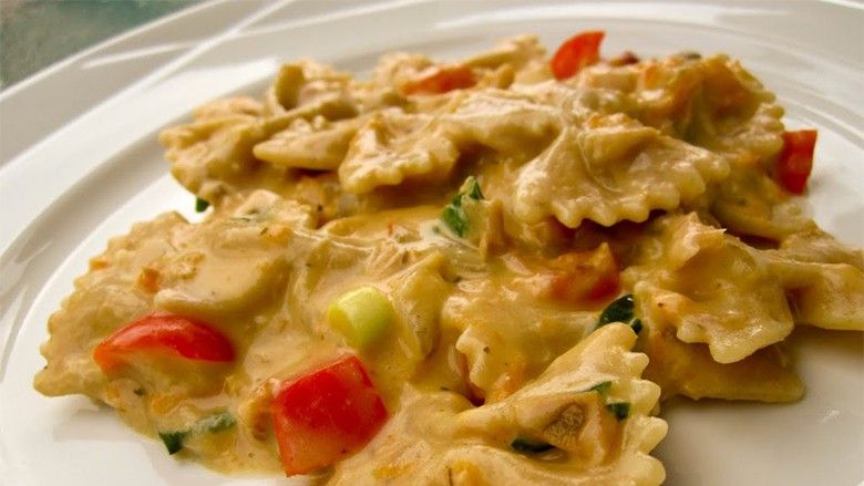 Makarona flutur me hudhër, vaj dhe peshk ton