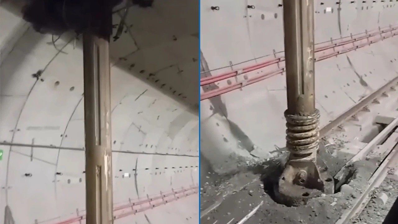 Në video shihet maikna duke dëmtuar tunelin dhe binarët e e metropolit turk.