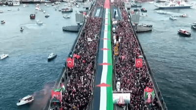 🇹🇷|🇵🇸 Thousands gather at Istanbul’s Galata Bridge on New Year’s Day to march in support of Palestine