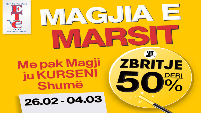 Marsi sjellë magjinë në ETC nga data 26 shkurt deri më 4 mars - event dedikuar për ju duke ju ofruar çmime të mahnitshme dhe risi në shumë artikuj.