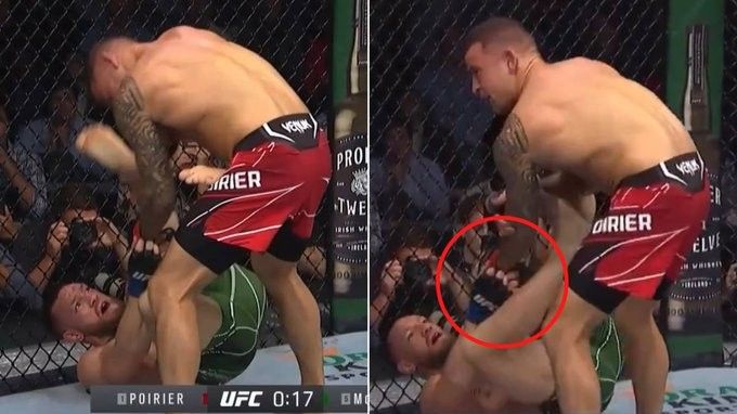 Një video tregon Conor McGregorin duke mashtruar haptas kundër Dustin Poirier pikërisht përpara gjyqtarit Herb Dean.