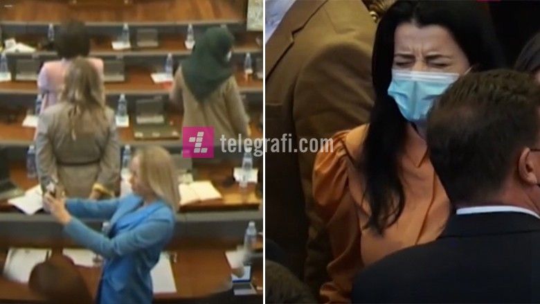 Aktorja Adriana Matoshi, mori telefonin fillimisht për të bërë një “selfie”, teksa më pas u duk sikur e incizoi përballjen mes deputetëve të PDK-së dhe LVV-së.