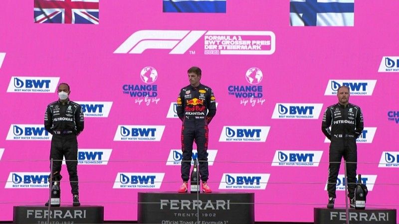 Krahas dy rivalëve të sivjetmë për titull, në podium u ngjit edhe Valtteri Bottas (Mercedes), derisa ploti tjetër i Red Bullit, Sergio Perez, përfundoi i katërti.