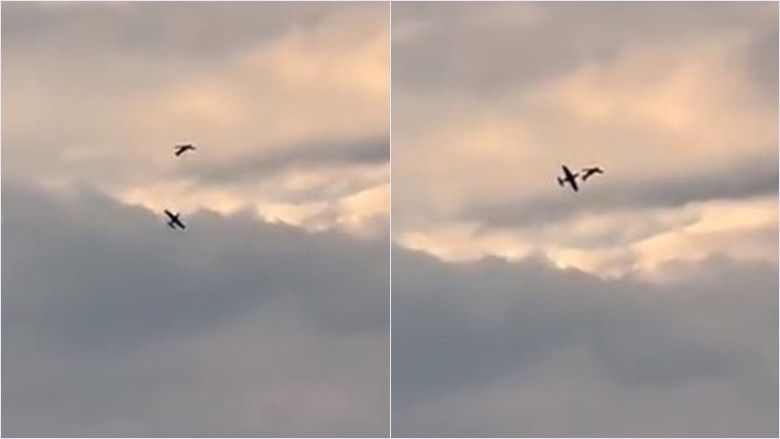 Dhe imazhet thuhet se tregojnë dy aeroplanët që fluturojnë paralelisht përpara se një manovër e hollësishme të shkojë keq, duke i çuar ata të rrëzohen dhe të “mbërthehen” ndërmjet vete.
