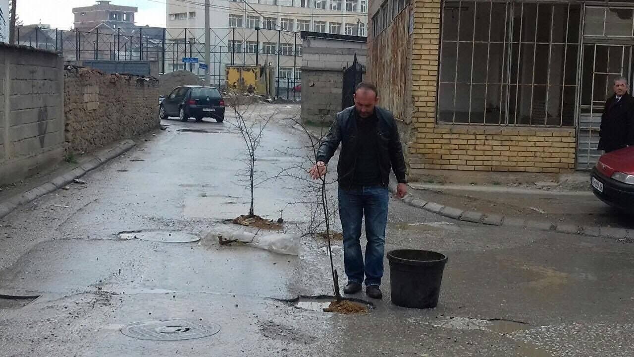 Rrjeti i OJQ-ve AVONET sot ka realizuar një performancë duke "mbjellë" katër therra në gropat e hapura në rrugët e qytetit të Ferizajt