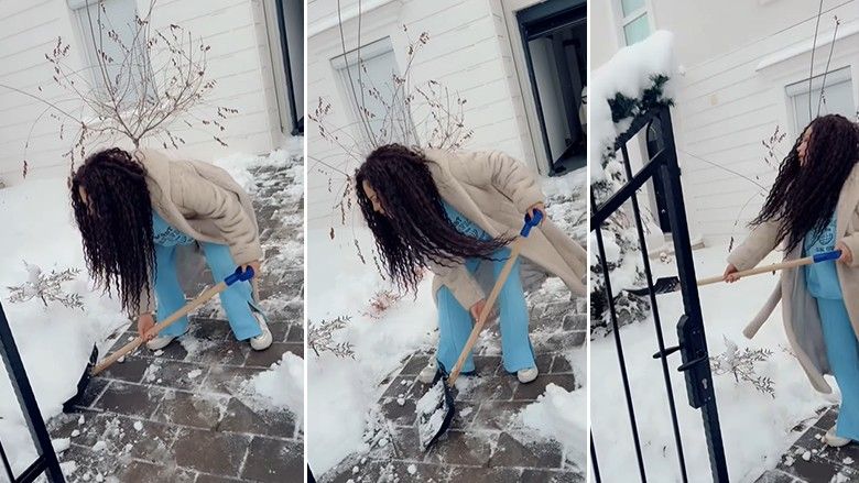 Ajo u shfaq duke pastruar borën në oborrin e saj, një detaj që tërhoqi vëmendjen duke qenë se e shtuna në kryeqytet ishte e mbuluar nga një shtresë e dendur bore.