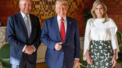 Trump u pa duke pozuar për foto me Mbretëreshën dhe bashkëshortin e saj, Mbretin Willem-Alexander, pasi ai mbërriti në vendin evropian për samitin e NATO-s të mërkurën, transmeton Telegrafi.