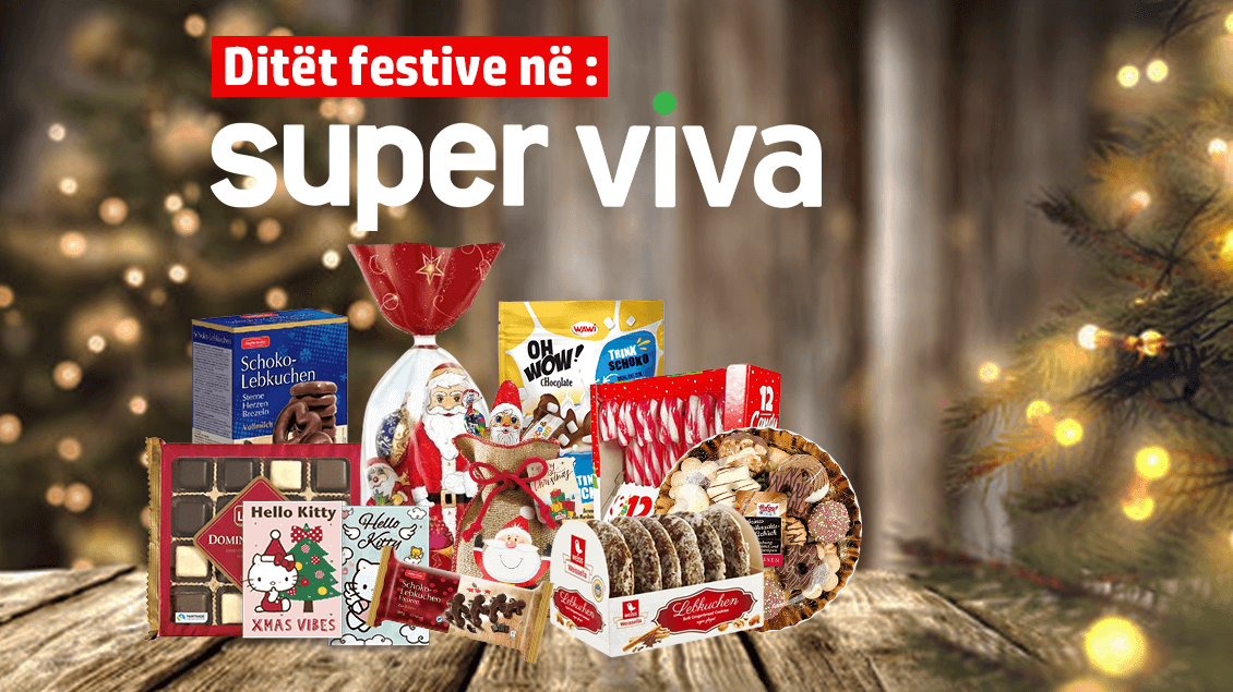 Shija e biskotave-Biskotat klasike: Shijoni biskota tradicionale në forma dhe madhësi të ndryshme, perfekte për dekorim ose për t’i ngrënë.-Biskotat e perziera: Bëhuni kreativë me përzierjen tonë të biskotave dhe pjekni një grusht biskota të bëra në shtëpi.Kënaqësitë Çokollatore-Kalendarët e Advent Çokollatë: Numëroni ditët deri në festat e fundvitit me kalendarët tanë magjikë të Advent çokollatë.-Trajtat e Mbuluara me Çokollatë: Shijoni një larmi të gjerë të trajtave të mbuluara me çokollatë, nga pretzelët tek biskotat.Të Preferuarat Festive-Përzierjet Festive: Përzierjet tona festive janë të mbushura me një larmi të gjerë të trajtave me tematikë festive, duke përfshirë Santa Clausët e çokollatës, dordolecët dhe më shumë.-Biskotat Festive: Shijoni një larmi të gjerë të biskotave, duke përfshirë ato me shije si vanilje, kokos dhe qershi.Pse të Zgjidhni Super Viva?Përzgjedhje e Gjerë: Ne ofrojmë një gamë të gjerë të ëmbëlsirave festive për t'iu përshtatur çdo shije dhe preferencë.Cilësi e Lartë: Produktet tona janë të bëra me përbërës të cilësisë së lartë dhe sigurisht do t'i kënaqin shijet tuaja.Çmime të Shkëlqyera: Ne i ofrojmë ëmbëlsirat tona festive me çmime konkurruese, kështu që ju mund të shijoni më shumë për më pak.Vizitoni Super Viva sot për të zbuluar gamën tonë të plotë të ëmbëlsirave festive dhe ta bëni këtë sezon festash më të veçantë.