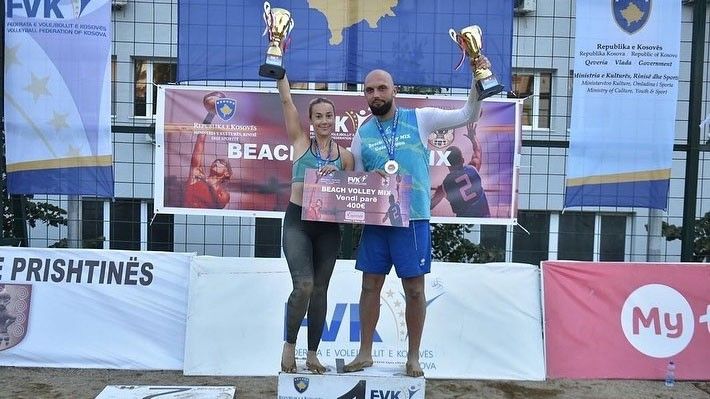 Çifti Alfred Pllana/Xhudjena Kurti ka triumfuar në garën e Beach Volley Mix, të organizuar nga Federata e Volejbollit të Kosovës (FVK) dhe Komuna e Prishtinës, të dielën.