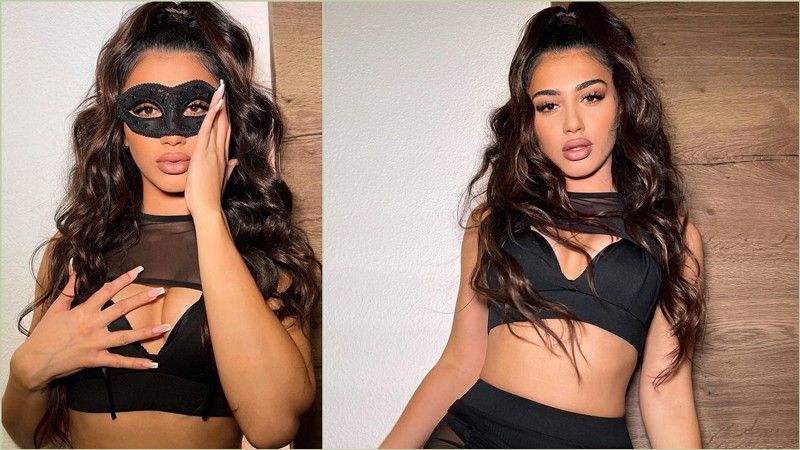 Këngëtarja dhe reperja është shfaqur me veshje të zeza në formë të brendshmesh që vënë në plan të parë figurën e mrekullueshme trupore.