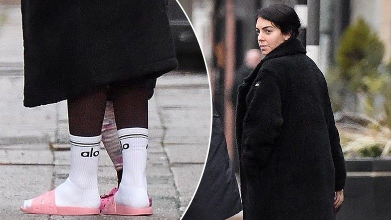 Me shapka rozë në dimër - e dashura shtatzënë e Cristiano Ronaldos fotografohet me stil të çuditshëm rrugëve në Angli
