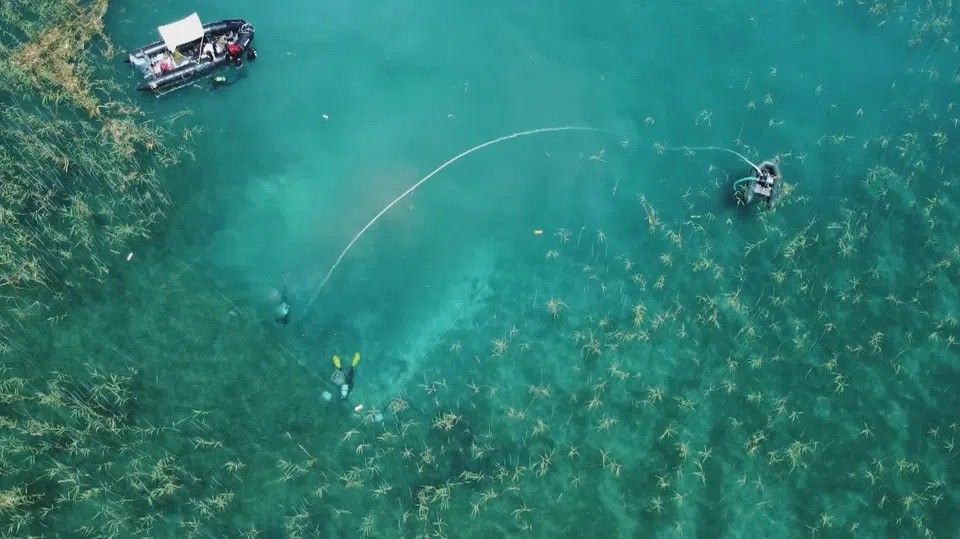 Gërmimet nënujore janë sfiduese. “Këtu kemi të bëjmë me shumë bimësi bregore. Duhet të luftosh nëpër shtretërit e dendur të kallamishteve për të arritur në vendin e zhytjes”, thotë arkeologia dhe hulumtuesja Marie-Claire Ries, e cila koordinon operacionet e zhytjes në vend.