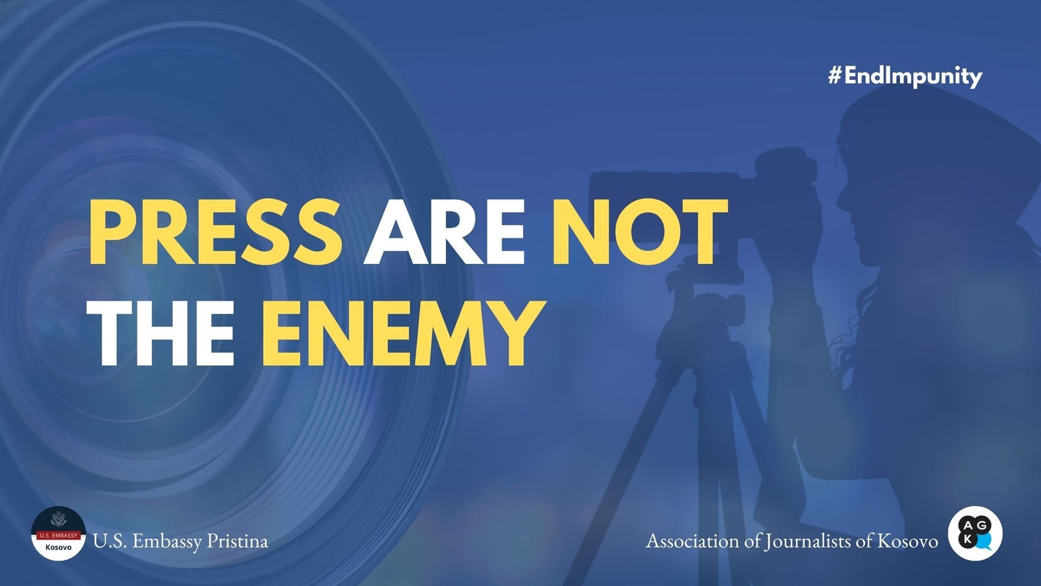 Asociacioni i Gazetarëve të Kosovës (AGK) në bashkëpunim me Ambasadën Amerikanë në Prishtinë, të martën, Ditën Ndërkombëtare për Mosndëshkueshmërinë e Krimeve ndaj Gazetarëve, e ka shënuar me lansimin e kampanjës për t'i dhënë fund mosndëshkueshmërisë së këtyre krimeve.