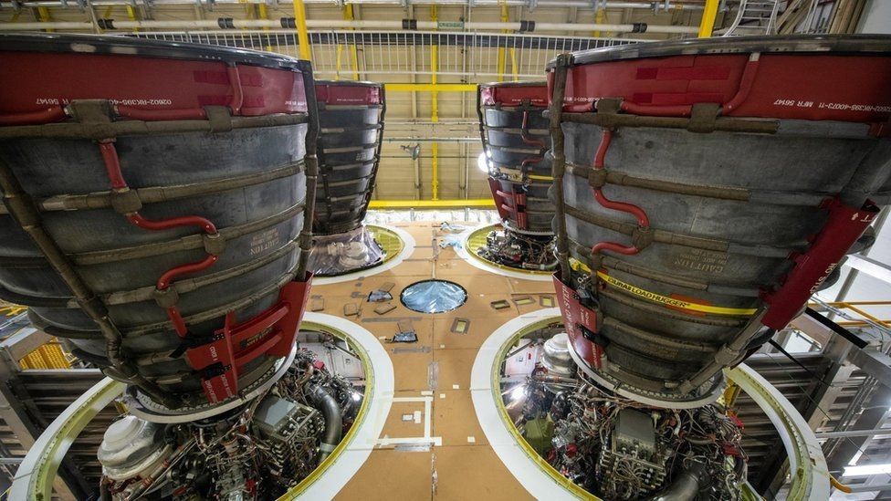 Pasi të ndizen, të katër motorët RS-25 në bazën e bërthamës do të gjenerojnë 1.6 milion lbs (7 Meganewtons) të shtytjes - forca që shtyn një raketë nëpër ajër. /Telegrafi/
