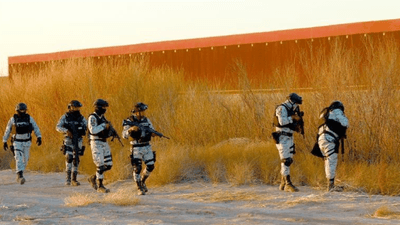 Anëtarët e maskuar dhe të armatosur të Gardës Kombëtare u panë të patrullonin pengesën kufitare në periferi të Ciudad Juarez.