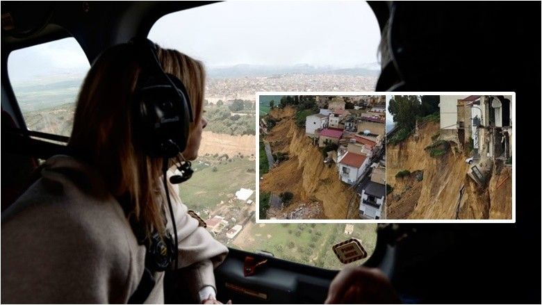 Meloni sheh dramën nga helikopteri – pa se si qyteti në Siçili po ‘shkatërrohej’ nga rrëshqitja e dheut