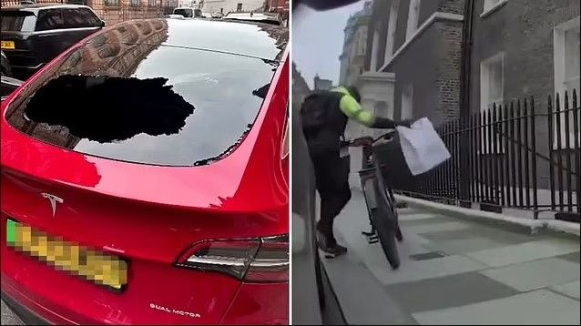 Një veturë Tesla ka regjistruar momentin kur një çiklist i maskuar thyen xhamin dhe vjedhë një xhaketë 1, 300 funtëshe Stone Island të pronarit të veturës elektrike që e bleu nga Harrods.