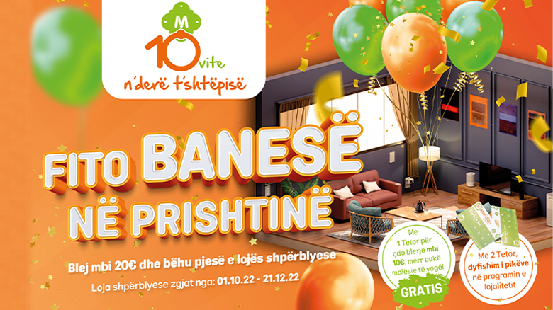 Meridian Express në ditëlindjen e 10 vjetorit, për konsumatorët e saj ka lansuar kampanjën më të madhe “FITO BANESË NË PRISHTINË”. Për çdo blerje mbi 20 euro, ju mund të bëheni fitues potencial i banesës. Përveq kësaj më 1 tetor, për çdo blerje mbi 10 euro, për të gjithë konsumatorët bukë Malësie Gratis. Me 2 tetor, dyfishim i pikëve në Programin e lojalitetit “Kartela ime”. Po ashtu ju sjellim një ofertë bombastike me çmimet më të lira në treg.