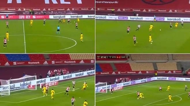 Messi mori topin në gjysmën e fushës së skuadrës së tij, i dribloi disa lojtarë në vijën anësore, bëri disa pasime telepatike me De Jongun, para se të shënonte me qetësi në portën e Bilbaos.