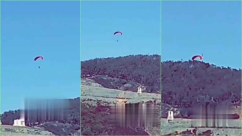 Ky është momenti i habitshëm kur një migrant i paligjshëm u ngrit në qiell për të fluturuar me parashutë drejt Evropës, duke zbritur në një enklavë spanjolle mbi një gardh kufitar të fortifikuar.