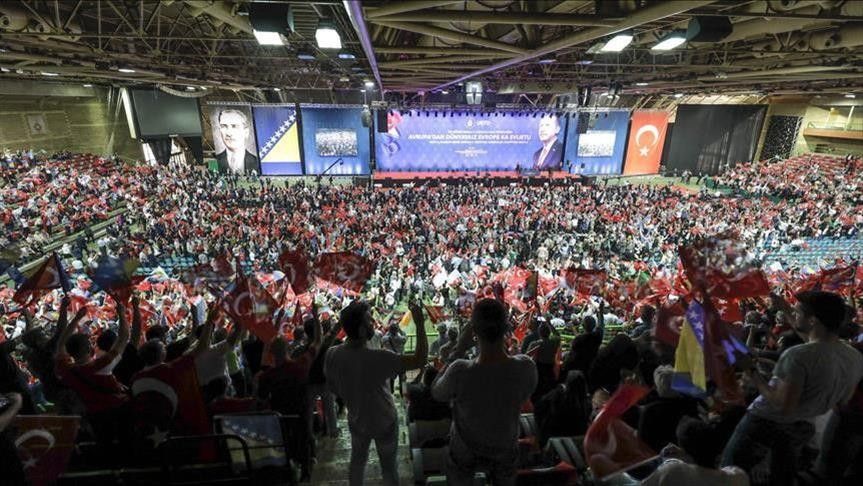 Rreth 20 mijë turq nga Evropa u mblodhën para dhe në sallën "Juan Antonio Samaranch - Zetra" në kryeqytetin e Bosnjë e Hercegovinës, Sarajevë, ku janë duke pritur ardhjen e Presidentit të Turqisë, Rexhep Tajip Erdogan.