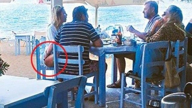 Nga fotografia duket se ai është duke folur me disa miq të tij, por poshtë tavolinës ia ka futur duart vajzës që e shoqëron në gjendje të dehur. /Indeksonline/